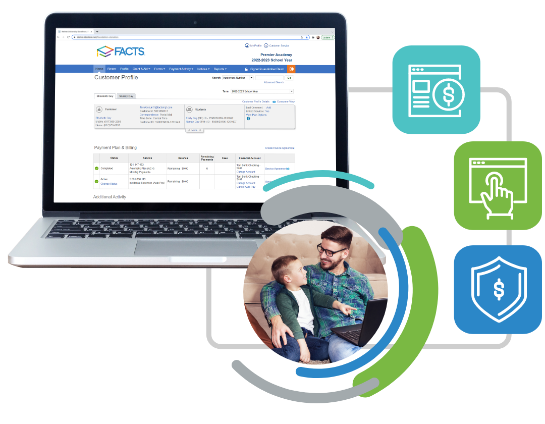 With FACTS Payment Plans, your school gets payment flexibility: customizable site design, multiple reporting views, line-item subaccounts, and multiple payment options for families.